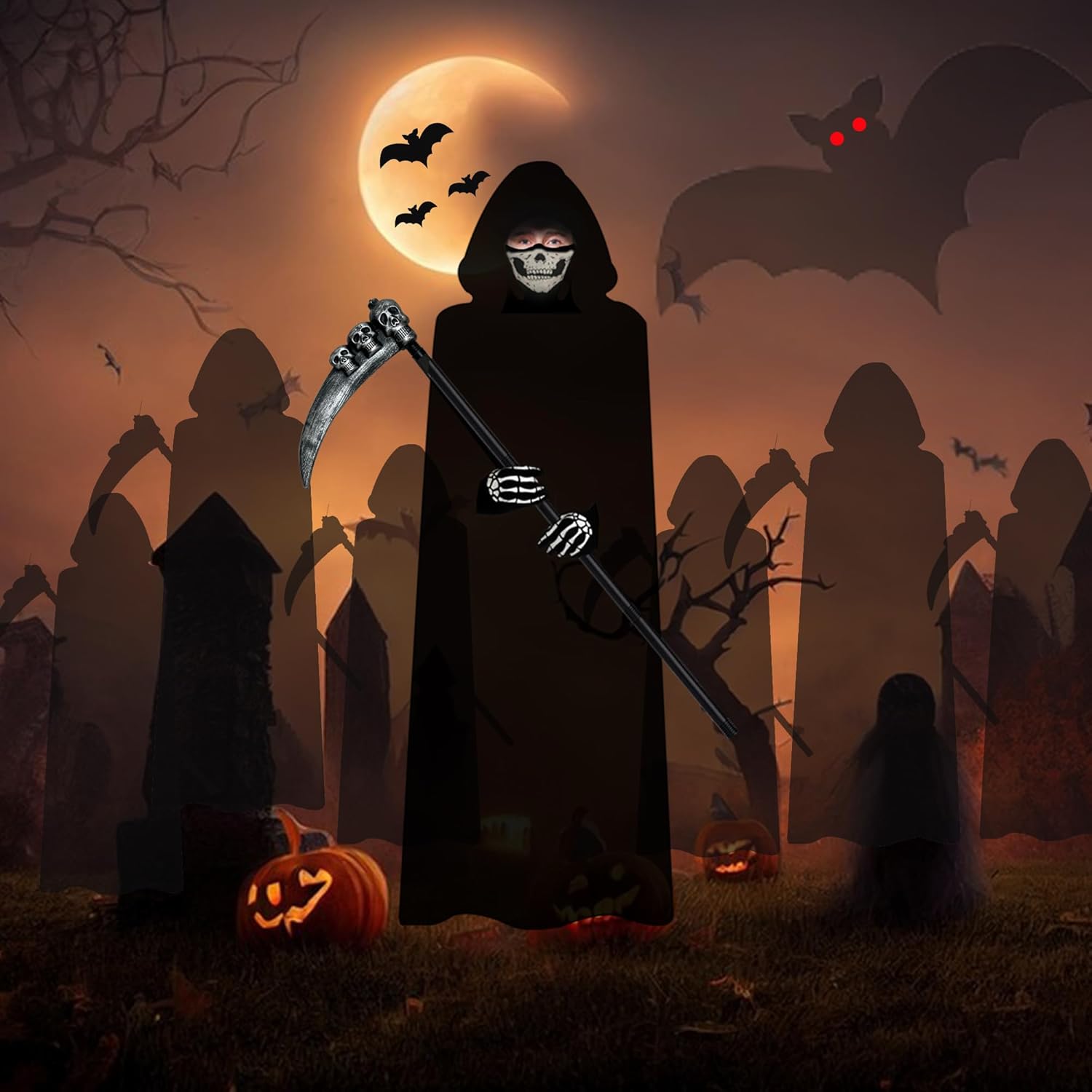 Elevate your Halloween festivities with our Grim Reaper Costume Set—the ultimate choice for those who dare to embrace the dark side. Order yours today and prepare for an unforgettable night!